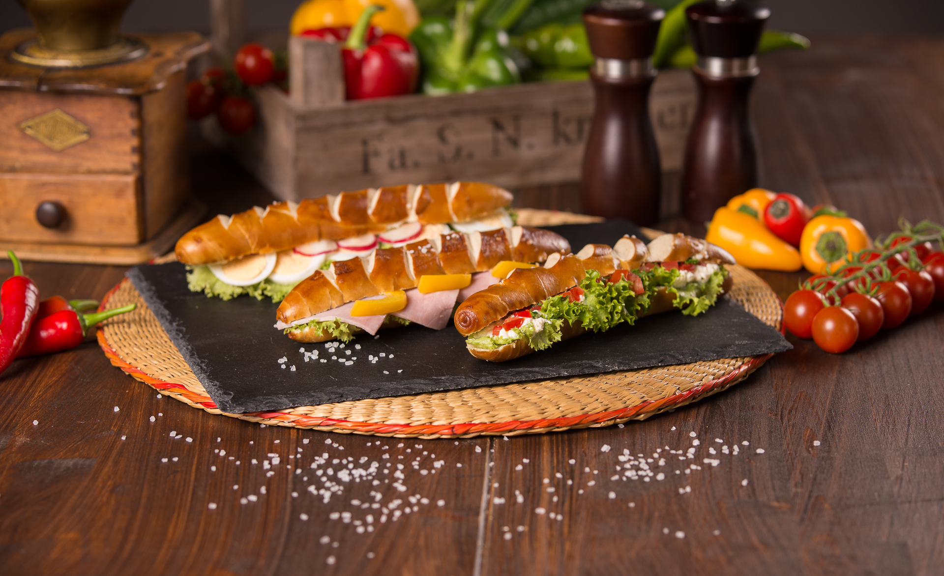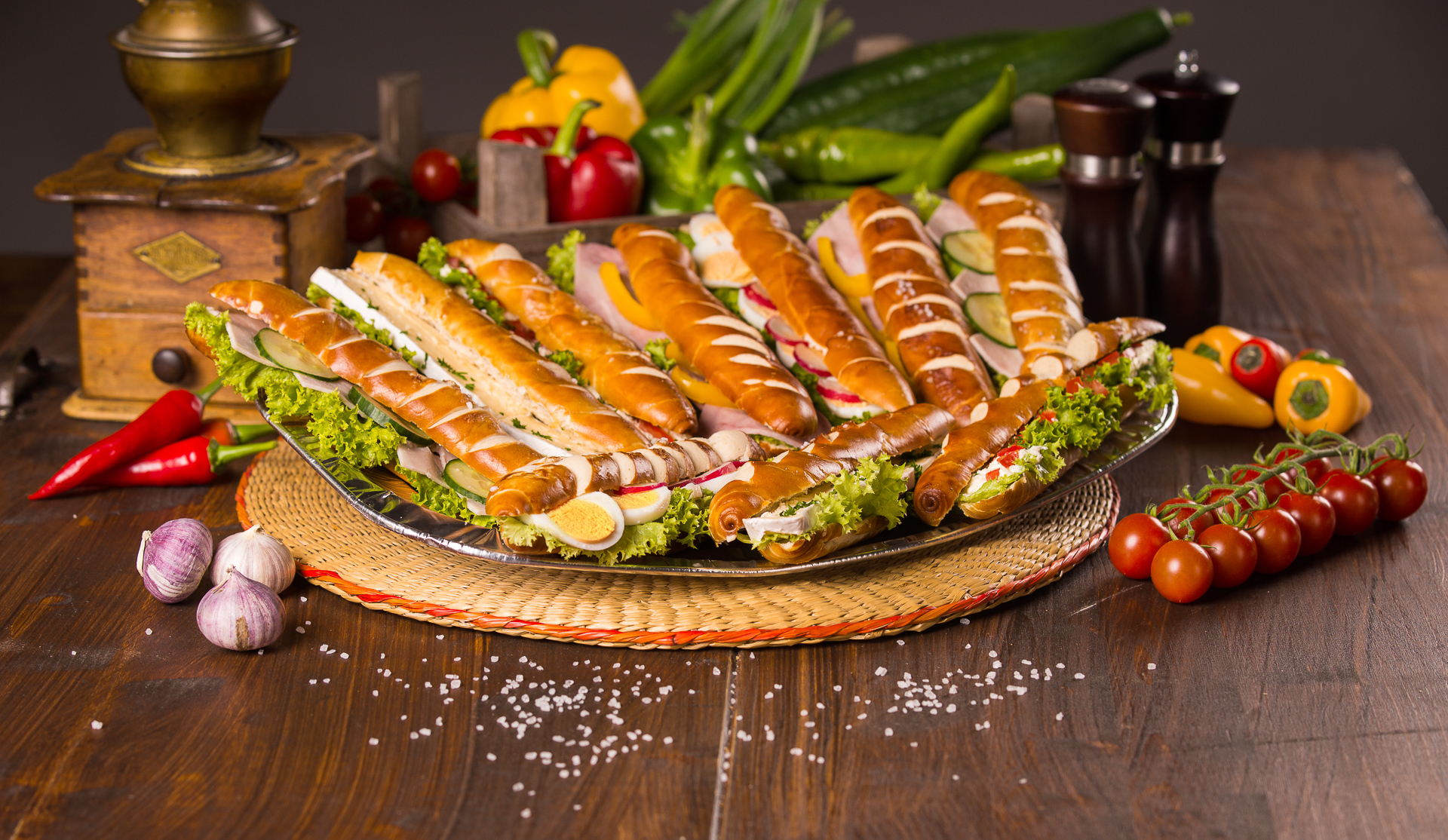 Ei ∙ Pute oder Kochschinken ∙ Camembert ∙ Salami ∙ Lachs ∙ SchafskäsecremeDekoriert mit knackigem Gartengemüse und Kräutern, abgerundet mitHausgemachten Chutney und Remulade.