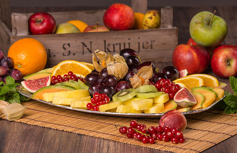 wie z.B. Weintrauben, Honigmelone, Banane, Erdbeere, Birne, Apfel, Ananas, Kiwi, Melone, Orangen, Feigen, Nektarinen, Aprikosen, Johannisbeeren, Brombeeren, Heidelbeeren, Himbeeren
