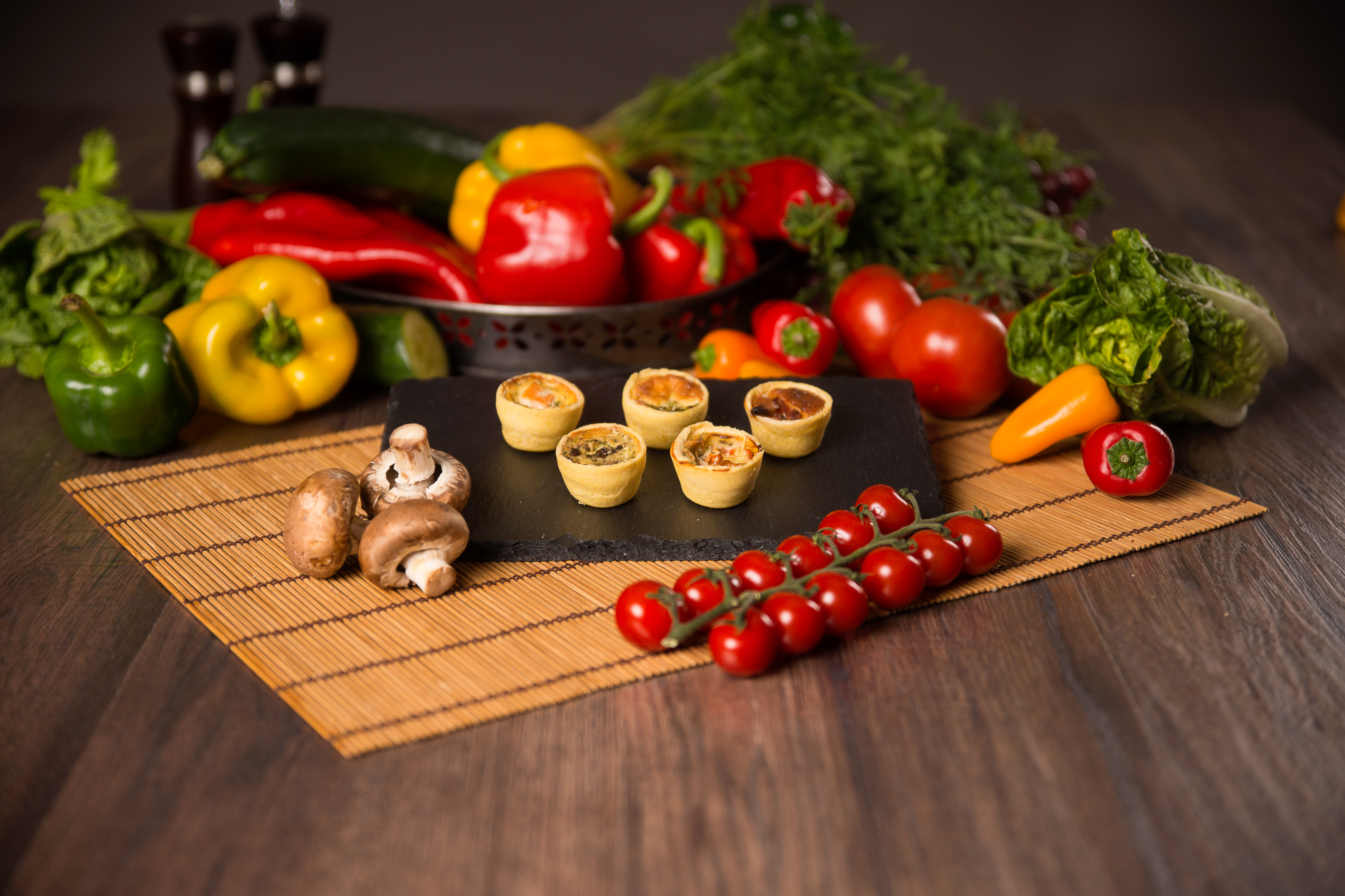 Köstliche Mischung aus Mini-Quiche als Fingerfood in fünf verschiedenen Sorten, mit einer Füllung, die auf der Zunge vergeht: