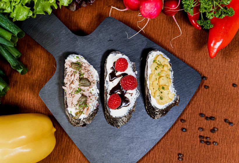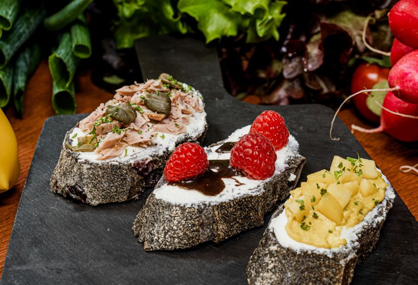 Black-Cranberrybaguette bestrichen mit Frischkäse: