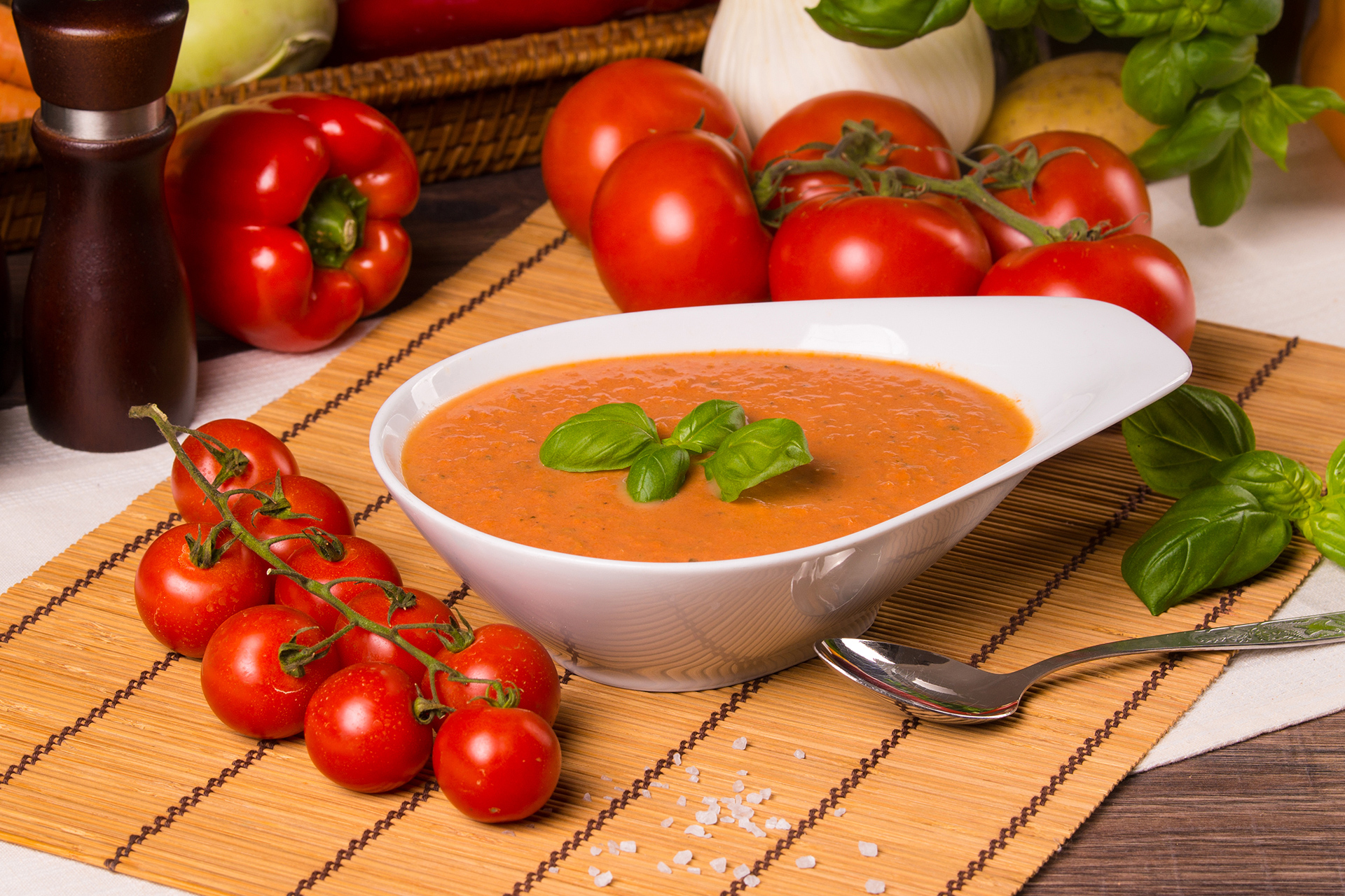 aus frischen Tomaten. Mit frischem Basilikum und ausgesuchten Gewürzen verfeinert. Lieferung im Suppenchaving.